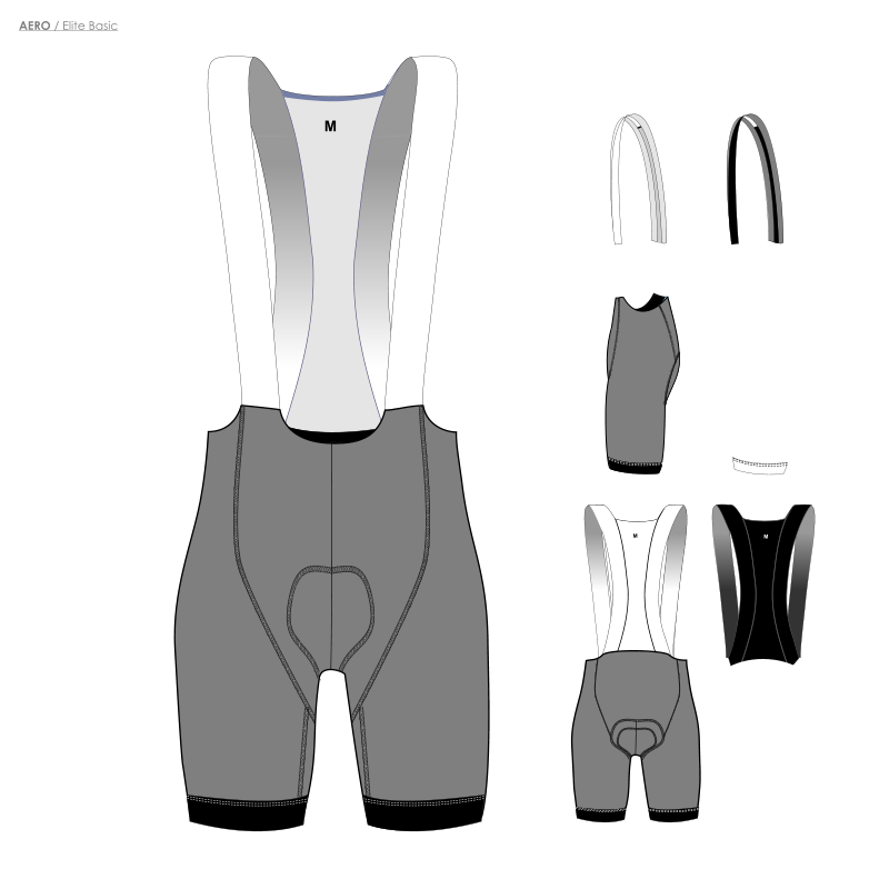 Die in individuellem Design produzierbare Radhose im Aero Elite Schnitt ist für Rennradfahrer, Mountainbiker und Gravel Biker konzipert. Ihre Hosenträger können entgegen unserem Radhosen Modell Aero Laser Cut Pro wahlweise in schwarz oder weiß bestellt und produziert werden. Sie hat 4,5cm hohe separate und voll bedruckbare Beinabschlussbündchen mit Silikonspuren. Zudem können Letztere umlaufend mit Reflektor Pins belegt werden. Aus glatter und sehr dehnbarer Oberflächenstruktur gefertigt, ist sie eine hochwertige Teamhose in Profiqualität. Neben ihren Trägern aus Mesh Material hat sie ebenfalls ein 4D Long Distance Pad +8h und beste Dämpfungseigenschaften.